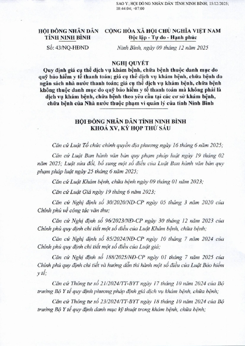 | Tiêu đề văn bản | Công bố giá DVKT theo Nghị quyết 43/NQ-HDND của Hội đồng nhân dân tỉnh Ninh Bình | ||